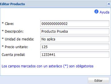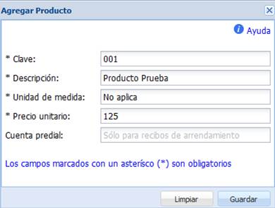 NOTA: La cuenta predial es obligatoria únicamente si desea utilizar éste producto al momento de crear un recibo de arrendamiento.