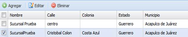 Para editar una sucursal del catálogo, la seleccionamos y hacemos clic en el botón “Editar”.