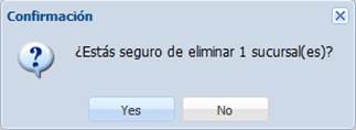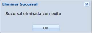 Para eliminar una o más sucursales, seleccionamos la o las sucursales deseadas y hacemos clic en el botón “Eliminar”.