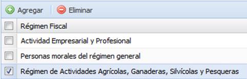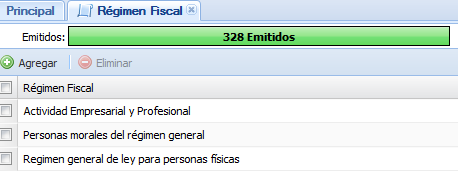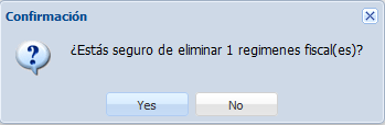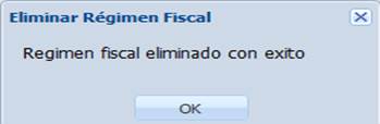 Para eliminar una o más regímenes fiscales, seleccionamos el o los regímenes fiscales deseados y hacemos clic en el botón “Eliminar”.