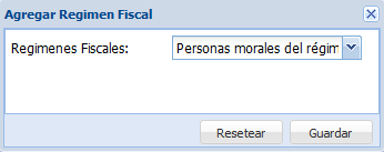Para agregar un régimen fiscal al catálogo, hacemos clic en el botón “Agregar”.