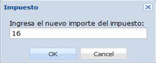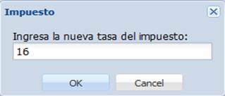 En la ventana que aparece, podemos ingresar el nuevo importe del impuesto. Para aplicar los cambios, hacemos clic en el botón “OK”.