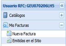 Esta sección permite la emisión y timbrado de CFDIs. Para acceder a este módulo, hacemos clic en la sección Mis Facturas >> Nueva Factura.