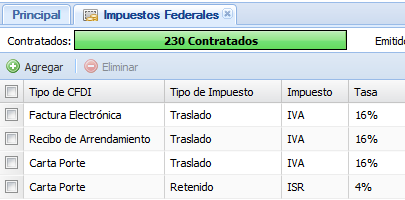 Para agregar un impuesto federal al catálogo, hacemos clic en el botón “Agregar”.