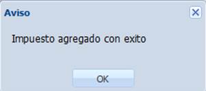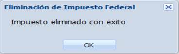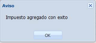 Para agregar el impuesto federal capturado en esta ventana, pulse “Guardar”. Obtendrá el siguiente mensaje de notificación.