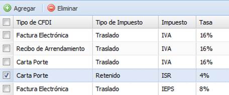 el CFDI que se encuentra elaborando. Por otro lado, podemos modificar la tasa de un impuesto