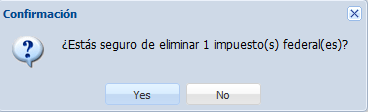 Para eliminar uno o más impuestos federales, seleccionamos el o los impuestos deseados y hacemos clic en el botón “Eliminar”.