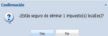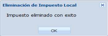 Para eliminar uno o más impuestos locales, seleccionamos el o los impuestos deseados y hacemos clic en el botón “Eliminar”.