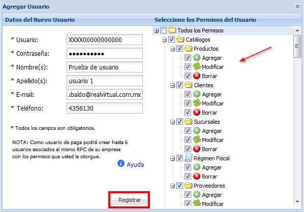 NOTA: Únicamente podrá crear hasta seis usuarios asociados al mismo RFC de la empresa registrada en el sistema.