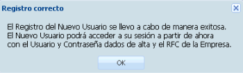 Para agregar el usuario capturado en esta ventana, pulse “Registrar”. Obtendrá el siguiente mensaje de notificación.