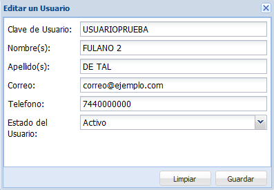 A continuación, aparece una ventana en donde modificaremos los datos del usuario.