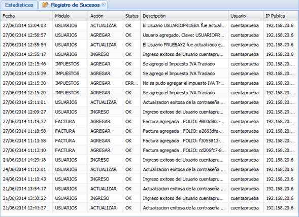 Por último, el usuario encontrará un registro de sucesos en el que se muestran todas las operaciones realizadas en el sistema y, no menos importante,