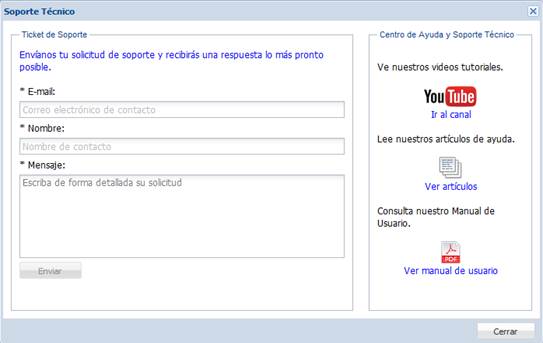 Es posible desde esta sección realizar una solicitud de soporte si tuviera alguna duda o inconveniente con el sistema, solo tiene que escribir su e-mail, su nombre y el mensaje que contenga el problema o duda de la cual necesite ayuda. Su solicitud será contestada lo antes posible.