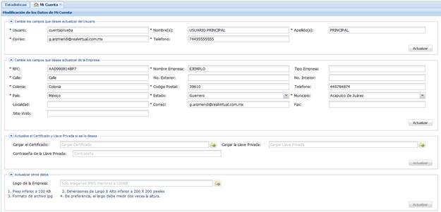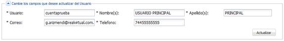 Esta sección permite actualizar los datos correspondientes al usuario principal.