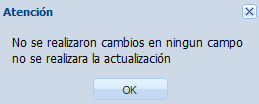 Por el contrario, si no realiza ningún cambio y pulsa “Actualizar” obtendrá el siguiente mensaje de notificación.