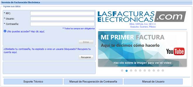 En el portal del sitio se lleva a cabo el inicio de sesión al sistema introduciendo su RFC, usuario y contraseña.